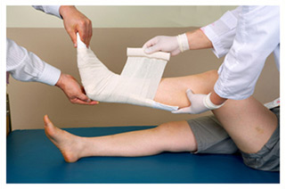 4、螺旋纏繞,1/3或1/2重疊6-9層,上肢非支撐患部重疊纏繞5~8層,下肢患部重疊纏繞8層以上;