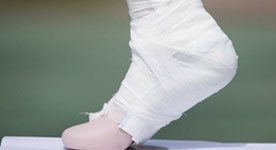 4、將夾板內(nèi)側(cè)厚的無紡棉層緊貼皮膚放在需固定的部位,根據(jù)患者部位的需要進(jìn)行塑型,同時(shí)用紗布繃帶或彈性繃帶纏繞固定;